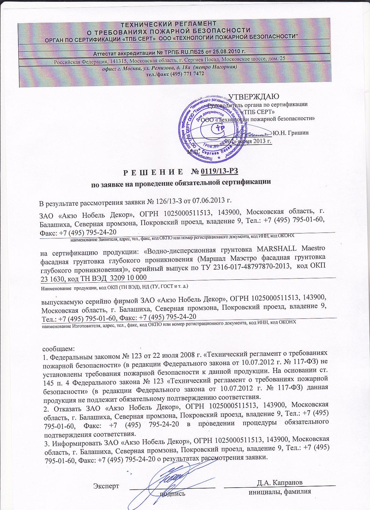 Технические характеристикиСвидетельство о госрегистрацииОтказное по сертификацииОтказное пожарное решениеПаспорт безопасности