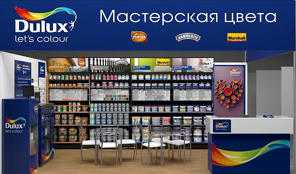 Для удобства и простоты выбора продукции «Мастерские цвета Dulux» оснащены удобной навигацией в торговом зале, зоной «Вдохновения», где на примере реальных выкрасов представлены рекомендации по сочетанию цветов и оттенков от дизайнеров «Британского института цвета AkzoNobel».